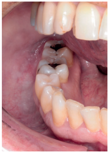 Tras la curación de los tejidos blandos y la desaparición de las molestias postquirúrgicas, su odontólogo general realizó el tratamiento de conductos de los dientes que habían estado en relación con el quiste: canino, premolares y molares inferiores derechos, al constatar que la vitalidad de estos ya no era positiva, por lo que cabe suponer que los paquetes vasculonerviosos de dichos dientes fueron dañados durante la cirugía.