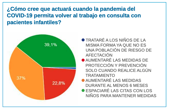 El propósito de este estudio ha sido analizar a través de una encuesta en redes sociales la actitud y forma de trabajar del odontopediatra, cuando se permita el tratamiento en la clínica dental después del periodo de confinamiento por el COVID-19, previas a los nuevos protocolos que se instauren desde los organismos oficiales.