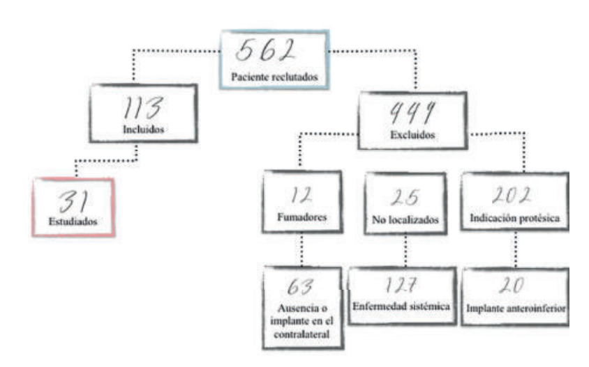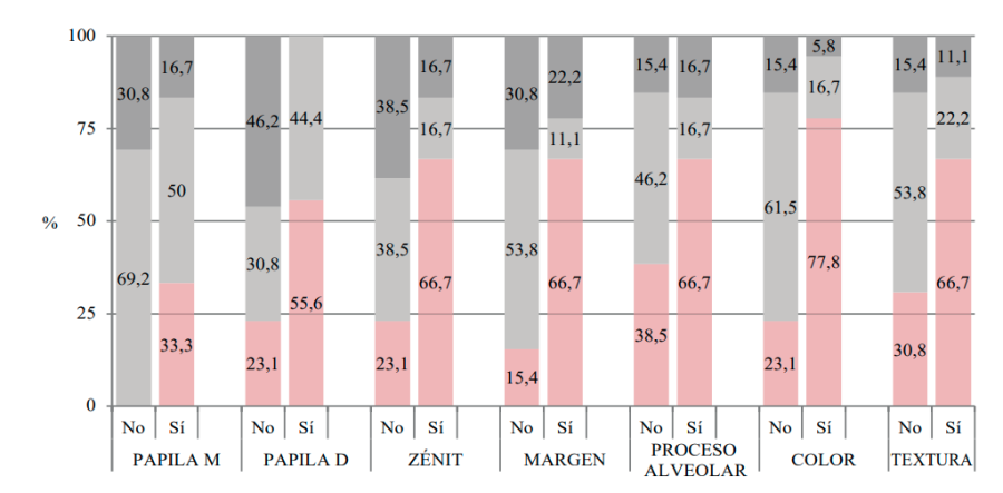 Por ello el objetivo principal del estudio, fue analizar la relación entre la presencia o ausencia de la tabla ósea vestibular en implantes dentales colocados en el sector anterior y el resultado estético de este tratamiento, valorado mediante el índice PES. Como objetivos secundarios se estableció analizar la satisfacción del paciente con el resultado del tratamiento y estética final, teniendo en cuenta el cumplimiento de las expectativas iniciales mediante la Escala Visual Analógica (EVA) y comparar este resultado obtenido con el índice hallado por el evaluador profesional.