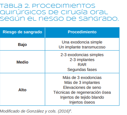 Yanamoto S, Hasegawa T, Rokutanda S, y cols. Multicenter Retrospective Study of the Risk Factors of Hemorrhage After Tooth Extraction in Patients Receiving Antiplatelet Therapy. J Oral Maxillofac Surg 2017;75:1338-43.