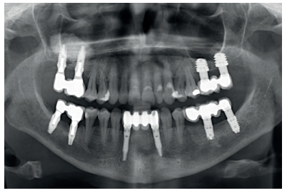The clinical case described is of a patient receiving both procedures: extra-short implants inserted directly into one maxillary quadrant and a sinus lift with conventional length implants in the other quadrant. The evolution of both treatments in the same patient was able to be observed over eight years.