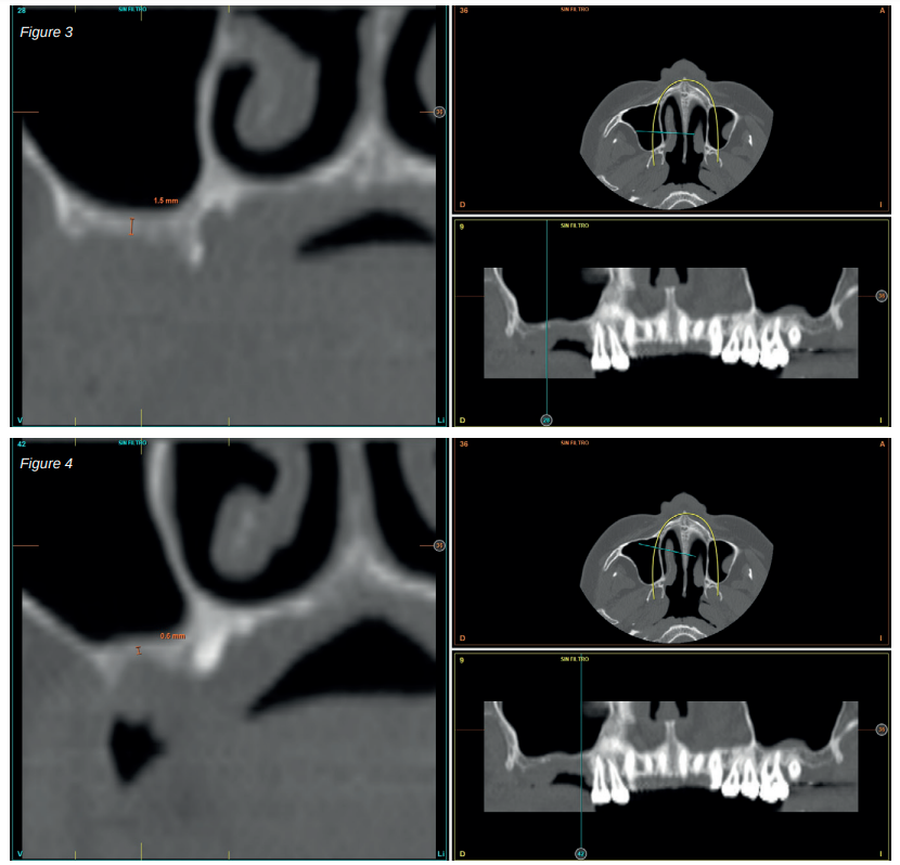 Approaching the posterior sectors of the maxilla with extreme resorption is a common situation in dental practice. The loss of antral teeth produces pneumatisation of the maxillary sinus, which progressively occupies the space corresponding to the dental roots, in some cases leading to complete atrophy and in a residual bone height of 1-2 mm aft er the dental socket heals. This pneumatisation occurs over ti me aft er tooth extraction, but is unpredictable in terms of quanti ty and speed, and appears to be slightly related to the type of relationship that occurs between the apex and the sinus. This relationship was described by Sharan and Madjar in 2008, who established a classification with greater pneumatisation is expected in its types 3 and 4 (Figure 1)1 .