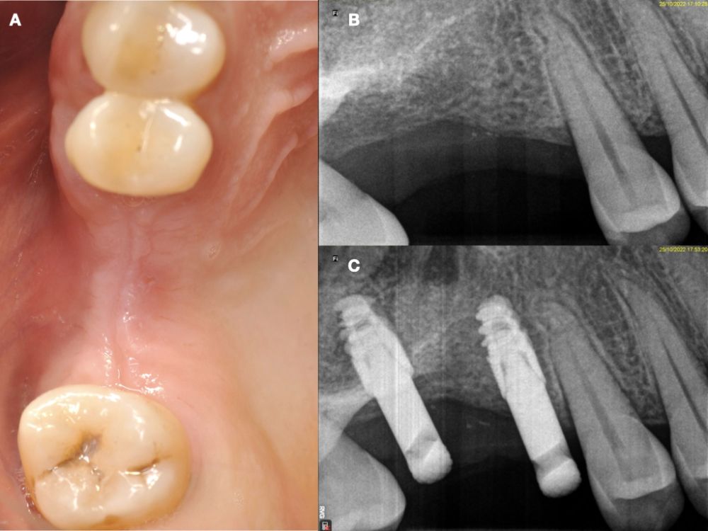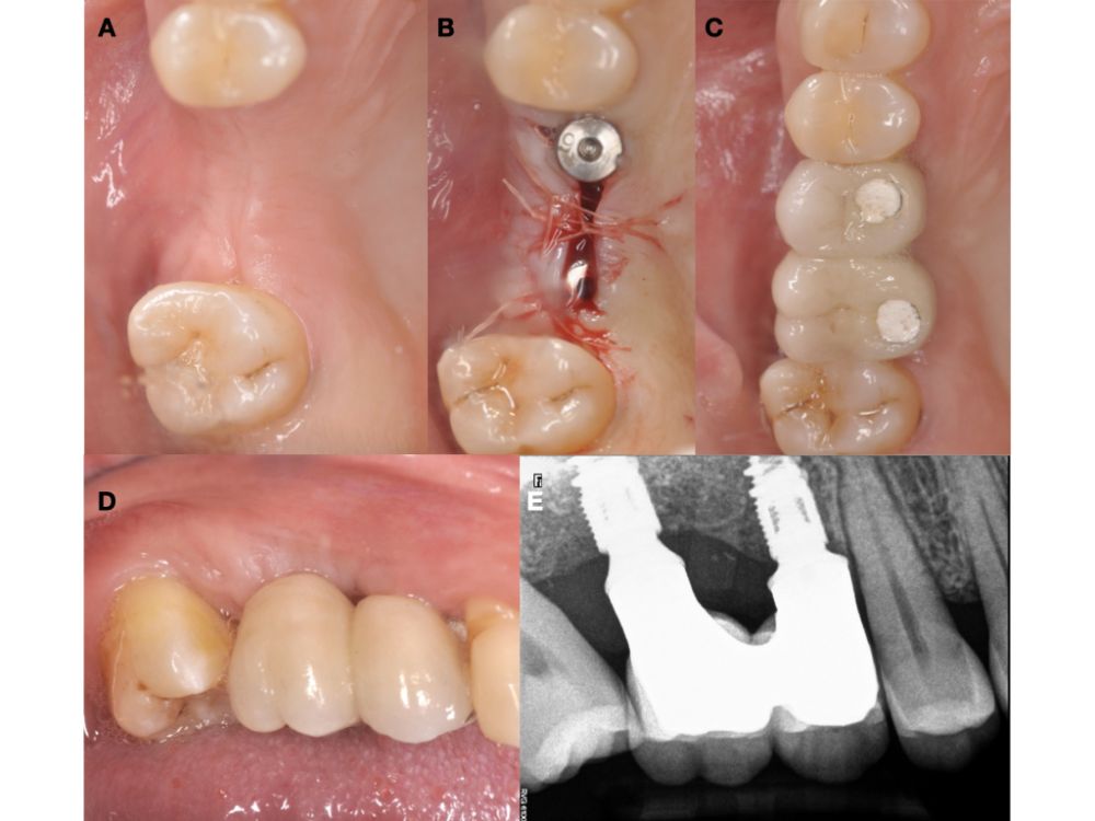 Caso clínico: se presenta el caso de una mujer de 48 años, que acudió a consulta para reponer el sector posterior derecho. Se realizó la exodoncia del 4.8 como diente donante para utilizarlo como biomaterial en una elevación de seno de acceso lateral, colocando dos implantes seis meses tras la intervención, y evaluándolos seis meses tras su carga protésica.