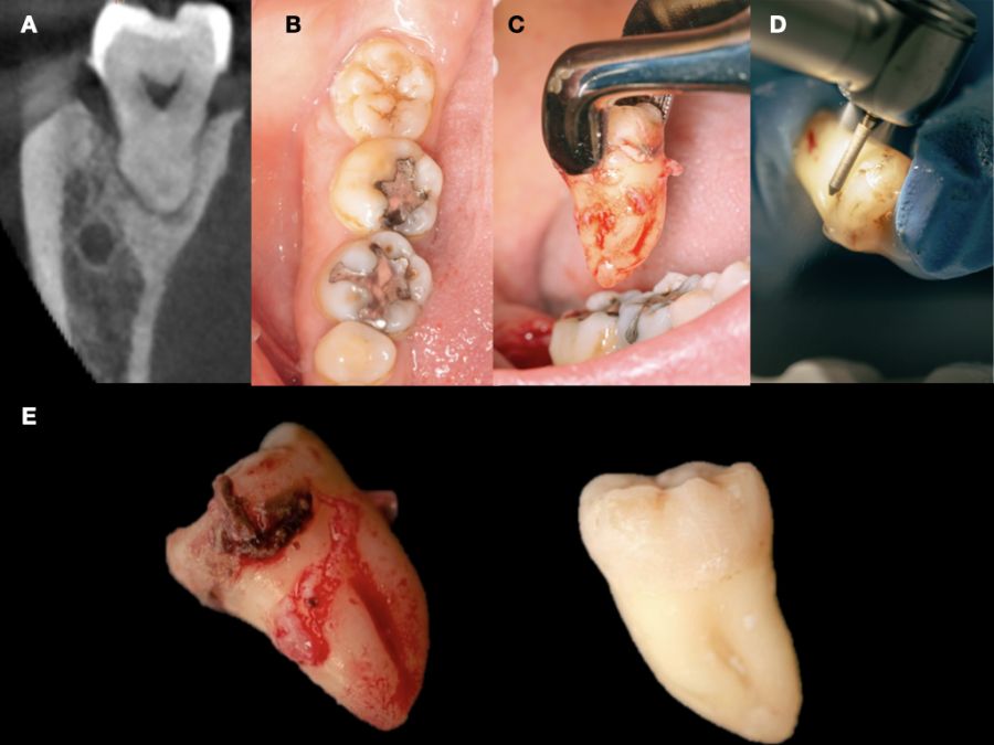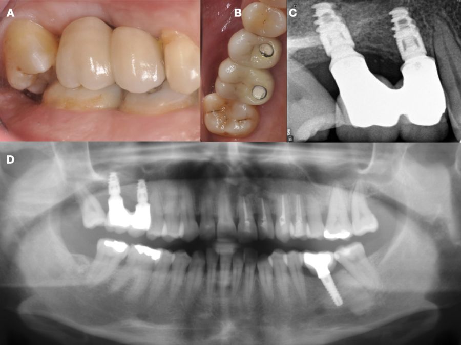 Caso clínico: se presenta el caso de una mujer de 48 años, que acudió a consulta para reponer el sector posterior derecho. Se realizó la exodoncia del 4.8 como diente donante para utilizarlo como biomaterial en una elevación de seno de acceso lateral, colocando dos implantes seis meses tras la intervención, y evaluándolos seis meses tras su carga protésica.
