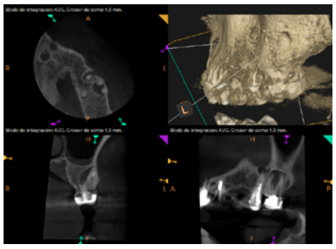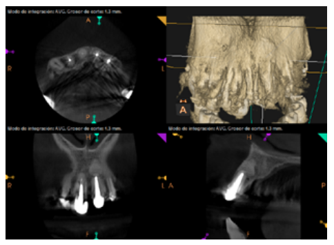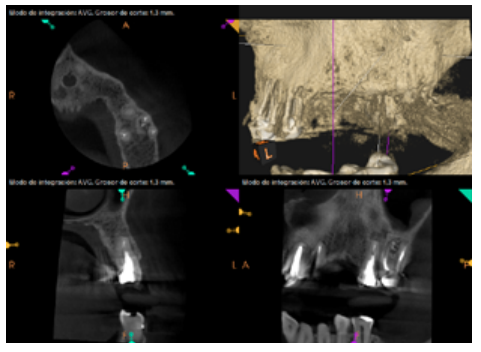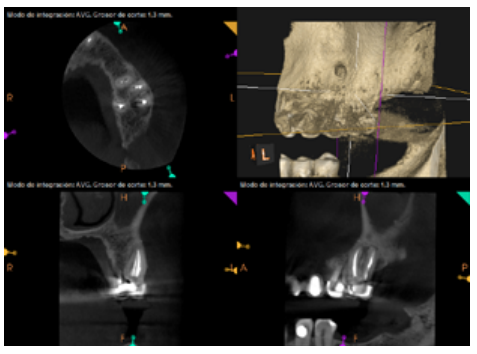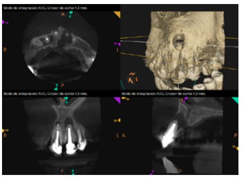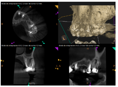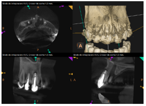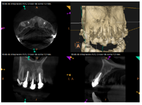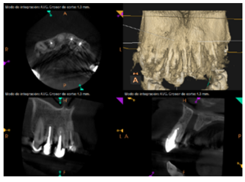 For proper diagnosis of radiolucent lesions at the periapical level, it is important to have radiological images that accurately show their location and size. In our case, the patient provided an orthopantomography; however, this type of radiography is not suitable for diagnosis in endodontics. The periapical radiography provides better definition, especially at the anterior level, as it is less distorted. CBCT is currently the most reliable radiological test, since it provides 3D images, which help to give a more accurate diagnosis1,2.