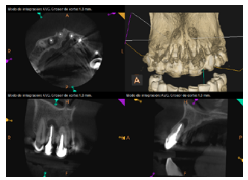 The patient was informed about his dental situation, and consent was obtained to perform apical microsurgery for three upper incisors (12, 11 and 21) and the need to use guided bone regeneration techniques (GBR) in 21.