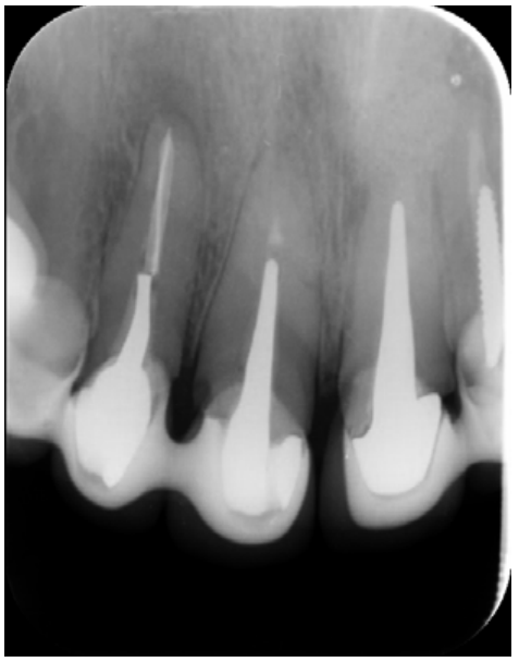 A 43-year-old male patient, with no relevant medical history and prosthetic rehabilitation using intraradicular posts and metal-ceramic crowns from 16 to 26, who came to the clinic due to recurrent infections and fistulas in the anterosuperior sector and 25-26 zone. The patient had had the extraction of all of them proposed to him, with the placement of implants, but wanted to assess the possibility of keeping his teeth.
