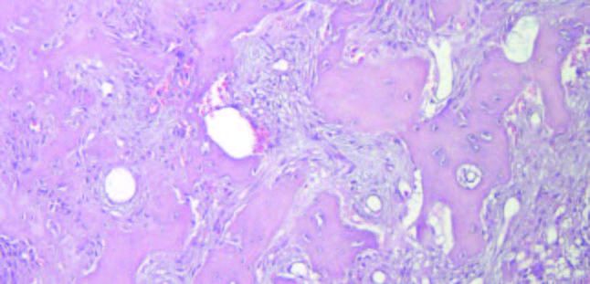 El análisis histopatológico, mostró una lesión fibro-ósea constituida por tejido conectivo fibroso con abundante celularidad fusiforme que rodea fragmentos trabeculares de tejido cemento-óseo vital, confirmando el diagnóstico de DCOF.
