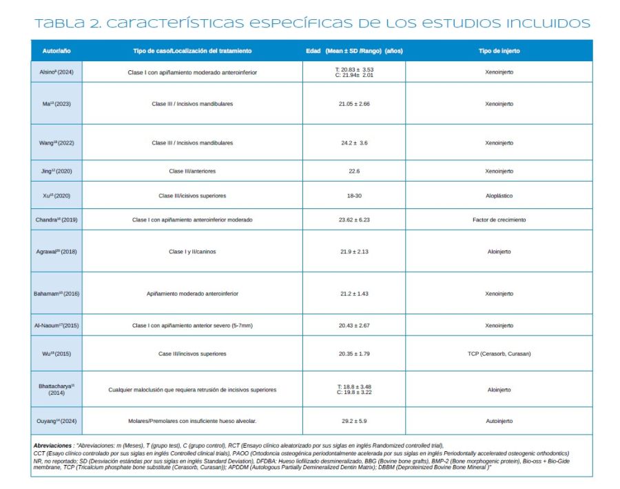 No obstante, la presente revisión presenta limitaciones relevantes. La heterogeneidad entre estudios (diseño, criterios de inclusión, localización de los tratamientos y tamaño muestral) compromete su validez interna y externa. Además, la falta de aleatorización adecuada y de cegamiento introduce posibles sesgos metodológicos. Los seguimientos, por lo general cortos, dificultan la evaluación de la estabilidad periodontal y ortodóncica a largo plazo. Asimismo, la variabilidad en los biomateriales y en los procedimientos quirúrgicos empleados puede influir en la respuesta tisular y en la eficacia observada. En conjunto, estas limitaciones reducen la solidez de las conclusiones y ponen de manifiesto la necesidad de estudios futuros más homogéneos, controlados y con mayor duración de seguimiento.