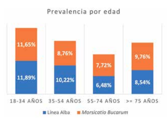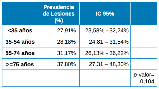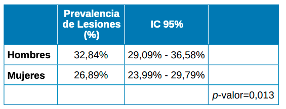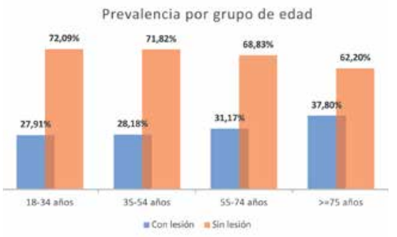 Resultados: En un análisis preliminar de 1536 historias clínicas se determinó que la prevalencia global de lesiones orales era del 29,27%, existiendo una diferencia estadísticamente significativa en cuanto al sexo, y no encontrándose diferencias estadísticamente significativas entre los diferentes grupos de edad. Siendo las lesiones de la mucosa oral más frecuentes la línea alba (9,78%) y el morsicatio buccarum (9,38%).