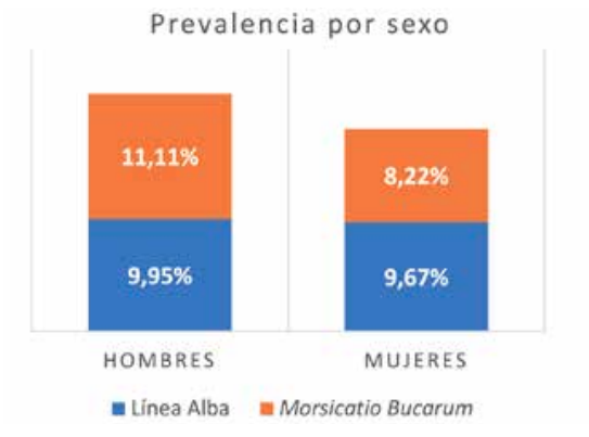 Results: In a preliminary analysis of 1536 medical records we determined that the global prevalence of oral lesions was 29.27%, with a significant difference regarding sex. No significant differences were found between the different age groups. The most frequent lesions of the oral mucosa were linea alba (9.78%) and morsicatio buccarum (9.38%).
