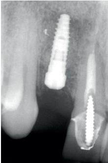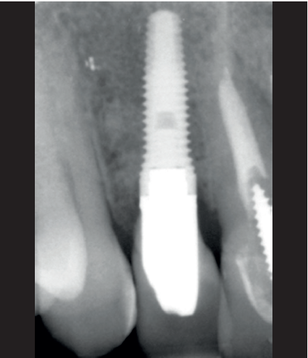 En casos como el mostrado, de implante unitario, se puede además generar con el propio implante una expansión adicional que permita corregir el defecto presente. La inserción del implante con expansión nos aporta una sobre- corrección extra que hace ganar todavía más volumen a este nivel. Esta técnica de expansión hacia vestibular del injerto una vez integrado, mediante la preparación del alveolo de forma que genere compresión, ha sido descrita por nuestro grupo de estudio con buenos resultados estables y duraderos a lo largo del tiempo20. En este caso, se ha utilizado también este procedimiento recuperándose el contorno en un área tan importante desde el punto de vista de la estética como la correspondiente a un incisivo lateral.