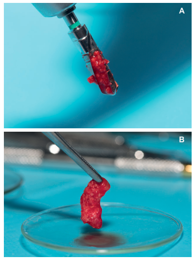 the drilling soaked in freshly activated PRGF-Endoret, ready for