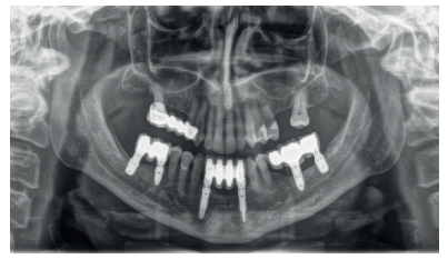 Back in 2007, the therapeutic protocol for these cases was very different (Figures 5-7), with short implants without full development – and without studies demonstrating the importance of diameter over implant length – efforts were focused on the search for anchorage by implant length instead of looking for the bicortical (vestibular-lingual) stability that short and wide implants perform. During this ti me, the failure of molars 46 and 47 also occurred; these were also extracted and replaced with dental implants.