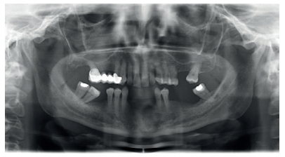 This was the case of a 58-year-old female pati ent who attended the dentist practice to assess the 16th and 17th molars for pain and mobility. On clinical examination, mobility of both was observed with suppuration at the level of the sulcus. Radiography confirmed our diagnosis of considerable bone loss and sinus perforation at the apex of both molars (Figure 2).