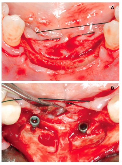 The objective of this work is the presentation of a clinical case in which we show two surgical techniques to solve the horizontal bone atrophy.