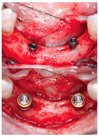 implants and (B) radiography with immediate anterior loading prosthesis and posterior progressive loading prosthesis.