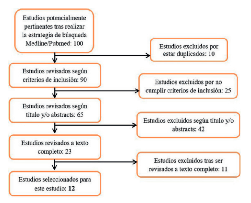 Tras aplicar los criterios de inclusión se obtuvo un resultado de 12 artículos para valorar las indicaciones de porcentaje y frecuencia de aplicación del FDP (Figura 3).