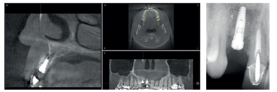 Replacement with an immediate post-extraction implant is a very common technique for teeth located on the aesthetic front, especially the maxilla. In many cases, in order to stabilise these implants, the aim is to increase their length (apical anchorage) and the morphology or the previous defect left by the alveolus sometimes forces us to an excessive over-angulation of the implant or a too vestibularised placement, with the subsequent difficulty of an adequate prosthetic rehabilitation1,2. Therefore, to perform a correct planning of each of the cases in this area it should be carried out leaving for a later phase (either completely postponed after healing or during early bone healing) the placement of the implant, allowing us to correct some of these errors1-3.