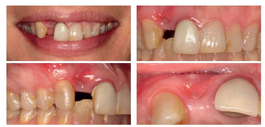 We present the case of a 36-year-old woman who comes to the clinic demanding solution for an implant located in position 1.2. This implant has carried a rehabilitation with a crown for a short period of time in which an important mucositis and loss of the thickness of the gingival tissue occurred, for which the crown was removed. The patient has a provisional removable crown and the soft tissue surrounding the area of the initial emergency of the implant-supported prosthesis is in bad condition, with a significant loss of thickness and the remains of a soft tissue fistula (Figures 1-4).