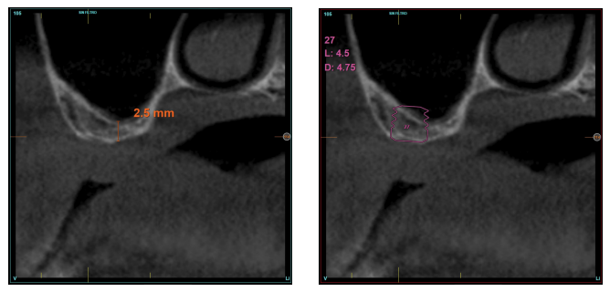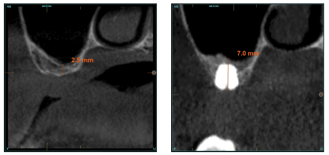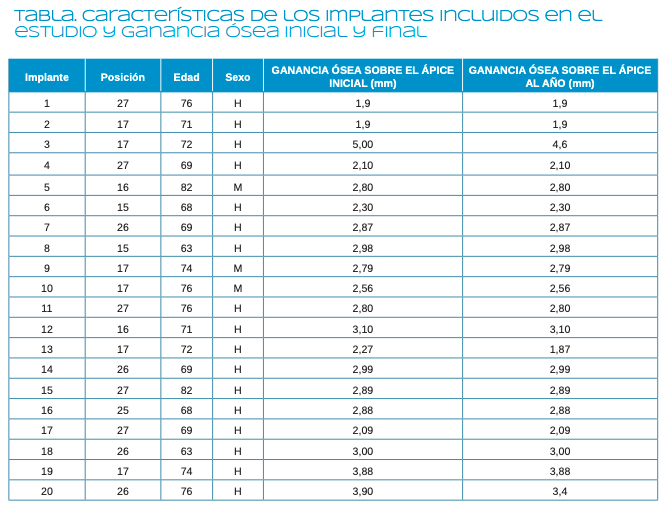 Los pacientes acuden a las revisiones posteriores realizándose un Cone-Beam de control a los 5 meses (antes de la carga del implante) y posteriormente al año de carga, realizándose posteriormente una nueva medición en estas imágenes para analizar la ganancia ósea y el mantenimiento de la misma. En estas revisiones, se recogen datos sobre complicaciones protésicas o pérdidas óseas crestales en estos pacientes, así como posibles fracasos.