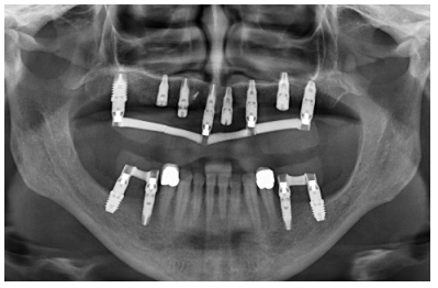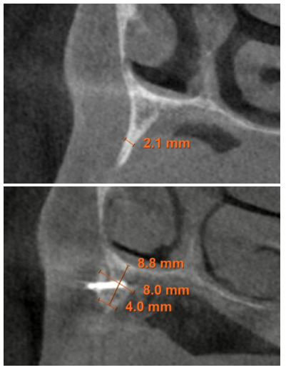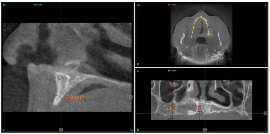 En el siguiente caso clínico, se muestra una situación donde han sido necesarios distintos procedimientos para rehabilitar el maxilar con una extrema pérdida ósea en anchura, en función de cada una de las zonas a tratar, individualizando el tipo de tratamiento según las características del lecho óseo remanente.