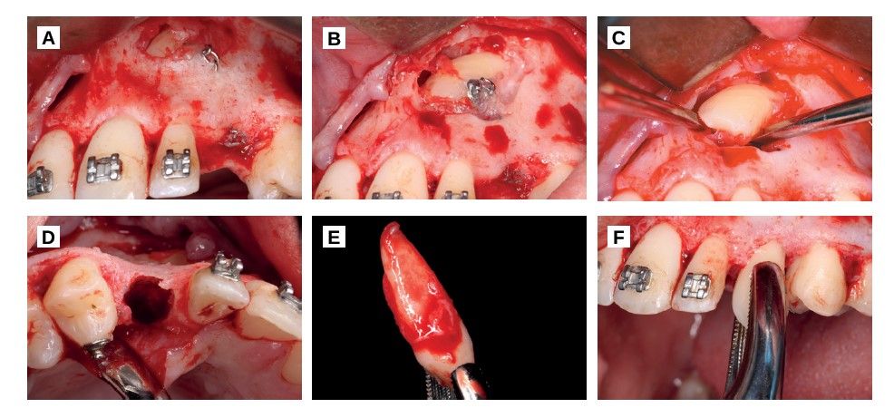 Autotransplants are also an option that allows combining different regenerative techniques. In the case described, it was decided to regenerate the palatal area with autologous scratched bone of the ramus since it is an area where a particulate is obtained with many morphogenetic proteins (BMPs), therefore, it increases the osteogenic capacity of the graft making it suitable to regenerate defects outside the bone18.