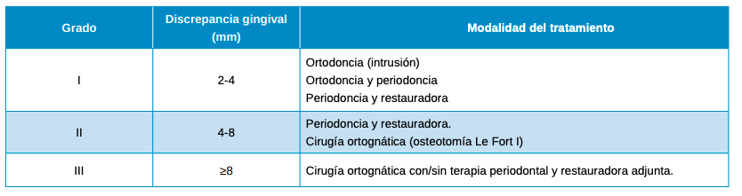 Si bien, con los labios entreabiertos, expone demasiado tejido del incisivo superior (>2 mm), puede coexistir un labio superior corto (causa de sonrisa gingival) o una altura labial correcta, en cuyo caso existiría una discrepancia entre los sectores anteriores y posteriores del plano oclusal debida a una sobreerupción (EAA) o un EVM20-22 (Tabla1).