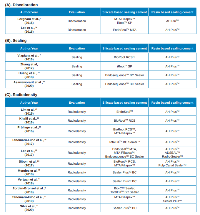 6. Silva Almeida LH, Moraes RR, Morgental RD, Pappen FG. Are premixed calcium silicate–based endodontic sealers comparable to conventional materials?