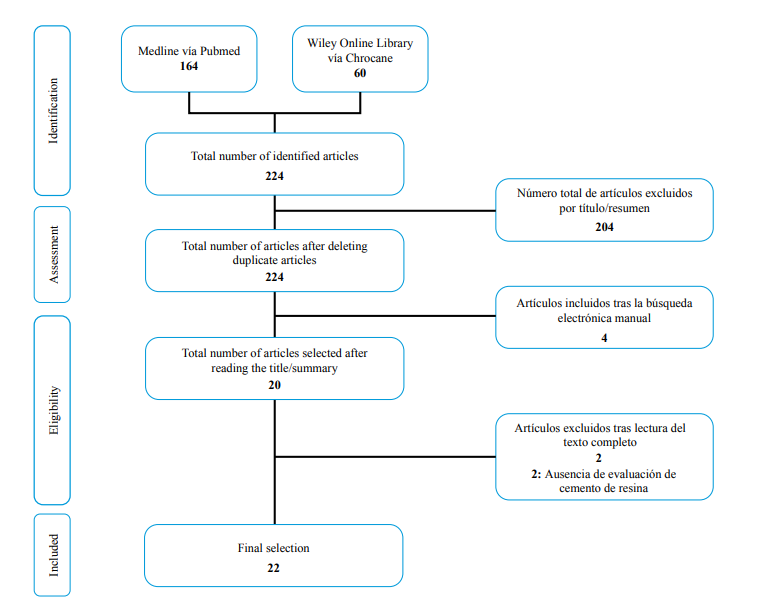 Results: 224 potential studies were obtained. Finally, applying the inclusion and exclusion criteria, 22 studies were included in the review. The different studies compared the different physical properties of silicate-based cements, comparing them with resin-based cements.