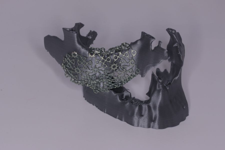Presentamos el caso de una paciente de 47 años que acude al servicio de cirugía maxilofacial por dolor en el área sinusal derecha en Junio de 2020. Se realizó una radiografía panorámica en la que se observó una imagen sospechosa en la zona del primer cuadrante. Dichos hallazgos se confirmaron con la realización de una tomografía axial computarizada (TAC) facial y una resonancia magnética en las que se identifica una extensa lesión tumoral que ocupaba el seno maxilar derecho e infiltraba el suelo de la órbita derecha y fosa nasal derecha (Figuras 1, 2 y 3). Tras la realización de una biopsia, se confirmó la presencia de un carcinoma adenoide quístico. De este modo, se planificó la extirpación quirúrgica y la fijación mediante placas preformadas sobre un modelo impreso en poliamida (Figura 4).