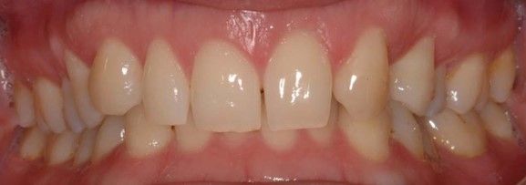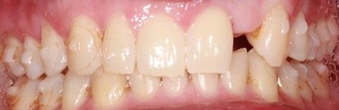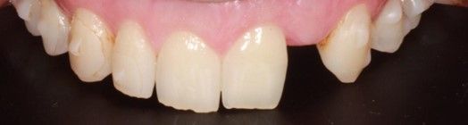 El paciente presentaba una agenesia congénita en el incisivo lateral superior izquierdo que había sido tratada previamente con ortodoncia para cerrar dicho espacio.