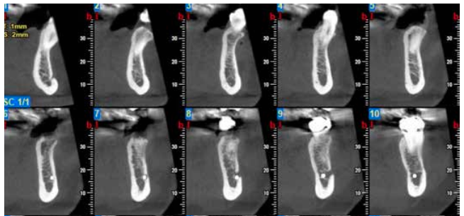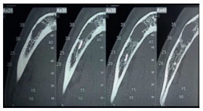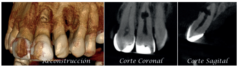Se realizó un 3D a los 26 meses para una nueva evaluación de la zona reabsortiva, y así evaluar el estado óseo alrededor de la misma. La paciente se presenta totalmente asintomática sin signos clínicos y con buena salud de los tejidos periapicales.
