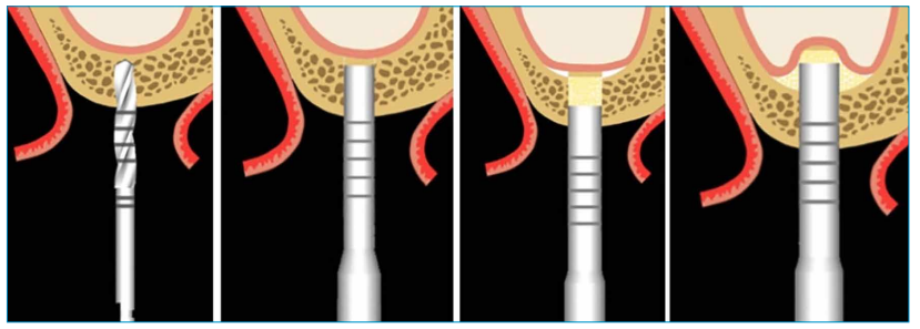 Complicaciones: la tasa de complicaciones en esta técnica regenerativa es baja, siendo la más frecuente la perforación de la membrana de Schneider, no suponiendo en la mayoría de los casos un impedimento para la colocación de implantes dentales.